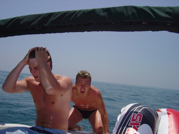 Author (in SPANKS) with Evan, on Neil’s boat, somewhere off the coast of Southern Spain, c. 2004.
